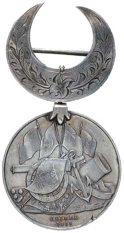 TURKISH CRIMEA MEDAL 1855, (British issue) with unofficial handcrafted suspender. Very fine.