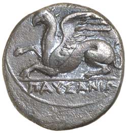 THRACE, Abdera, (375/3-365/360 B.C.), silver drachm, (2.36 gm), obv. Griffin springing to left of base with both forelegs raised, below **PAUSANIW*, rev. within linear square with Apollo laureate head to right, in field around **ABD HR[I TEW]N*, (cf.S.1552, May [Coinage of Abdera] 482-493, BMC 57). Short on flan, good very fine and very scarce.