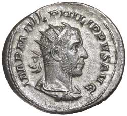 PHILIP I, (A.D. 244-249), silver antoninianus, Rome mint, issued 247, (3.71 grams), obv. radiate bust ...