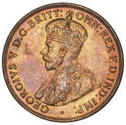 GEORGE V, 1918I. Full original mint red with purple highlights, choice uncirculated and very rare in this condition, one of the finest known.
