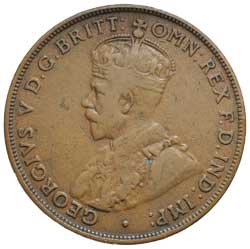 GEORGE V, 1930, Indian die. Weak top scroll, six pearls, medium brown patina, minor rim ...