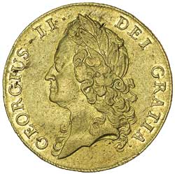 GEORGE II, young head, two guineas, 1739 (S.3667B). Reverse rim bruise at 3.30 o'clock, otherwise ...