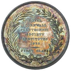 ROYAL CORNWALL POLYTECHNIC SOCIETY, first class prize medal in silver (45mm) by W.Wyon (Eimer 1272), ...