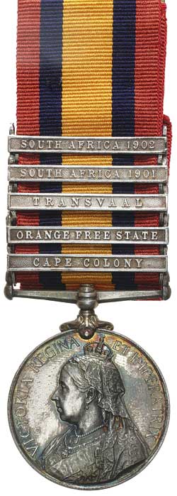 QUEEN'S SOUTH AFRICA MEDAL 1899, (type 2 reverse with clear ghost dates), - five clasps ...