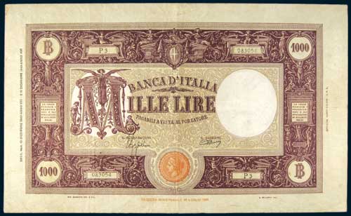 ITALY, Banca d'Italia, one thousand lire, 12 December 1942, P3 083054 (P.62). Very fine. ...