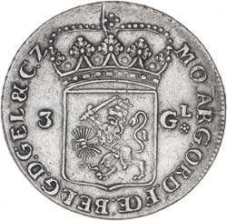 NETHERLANDS, Gelderland Province, silver three gulden, 1764, (KM.103, C.A.14). Good very fine and scarce.