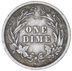 USA, BARBER DIME, 1895S. Very fine.