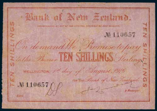 BANK OF NEW ZEALAND, seventh issue, ten shillings, Wellington, 1st April 1917, No. 076886, '10 ...