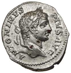 CARACALLA, (A.D. 198-217), silver denarius, issued 209, Rome mint, (3.28 g), obv. laureate head to ...