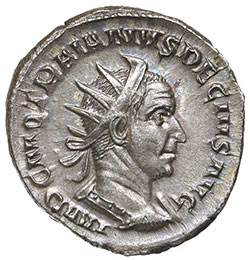 TRAJAN DECIUS, (A.D. 249-251), silver antoninianus, Rome mint, issued 250, (3.86 g), obv. radiate draped ...