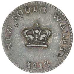 NEW SOUTH WALES, fifteen pence or dump, 1813 (Mira dies A/1). Struck over the centre ...