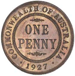 GEORGE V, 1927, London die. Subdued mint bloom on obverse, proof-like on reverse, red uncirculated.