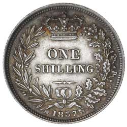 WILLIAM IV, shilling, 1837 (S.3835). Toned, extremely fine and scarce.