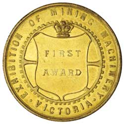 EXHIBITION OF MINING MACHINERY, Victoria, 1894, first award medal, in gold (12.5g, 31mm) by Blashki ...