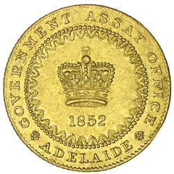 ADELAIDE POUND, second type, 1852, with crenellated inner circle on the reverse. An early die ...