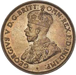 GEORGE V, 1928. Glossy brown with traces of red, nearly uncirculated.