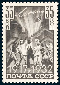 RUSSIA, an extensive range of most single and set issues (no M/S), apparently all are commemorative related from 1914 - 1973, housed on small Hagners and stored in cellophane packets stored in two boxes, mostly MUH but most pre 1945 issues mint, noted 1930 air 'Graf Zeppelin' SG 574-5; 1931 'Airship construction' SG 579-583; 12th anniversary October Revolution SG 593-599 (includes rare 35k, illustrated); 15th death anniversay Baku Commissars SG 638-642; 1934 Air, 10th anniversary of Soviet Civil Aviation, SG 643-647; 1934 Air set SG 662-666 (30k rare), some duplication on later issues. Mint and MUH, a few with rust and paper toning. (100s)