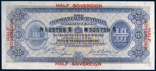 TEN SHILLINGS, Cerutty/Collins (1918) N 525759 S (R.3b). Flattened of folds, very fine.