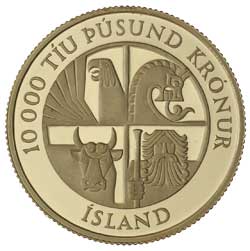 ICELAND, proof ten thousand kronur, 1974 (KM.22). FDC.
