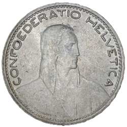 SWITZERLAND, five francs, 1923B (KM.37). Extremely fine.