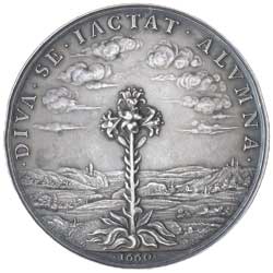 FRANCE, Anne of Austria as Queen Dowager of France, 1660, in silver (60mm), a restrike from the Paris Mint of the original unsigned, obv. bust of Anna to right, rev. Diva Se Iactat Alumna, plant in foreground clouds, valley and hills. Extremely fine.