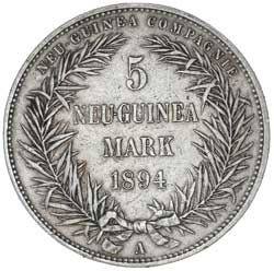 GERMAN NEW GUINEA, five mark, 1894A. Toned, good very fine.