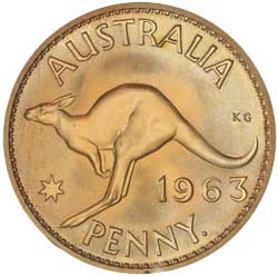 ELIZABETH II, Perth Mint proof penny, 1963. Red, nearly FDC.