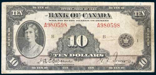 CANADA, Bank of Canada, ten dollars, issue of 1935 (P.44). Nearly fine and scarce.
