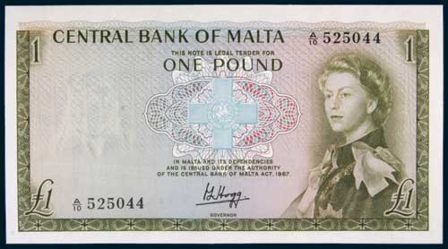 MALTA, Central Bank of Malta, Elizabeth II, one pound, 1967 (1968), A/10 525044 (P.29a). Virtually uncirculated.