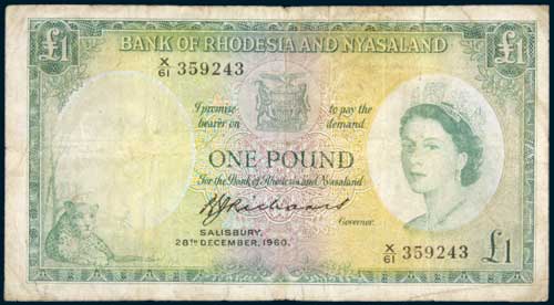 RHODESIA AND NYASALAND, Bank of Rhodesia and Nyasaland, Elizabeth II, one pound, Salisbury, 28th December 1960, X/61 359243 (P.21b). Very good and rare.
