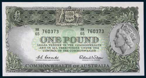 ONE POUND, Coombs/Wilson (1961) HK/68 359043 (R.34bx), last serial prefix for Reserve Bank Archives. Signs ...