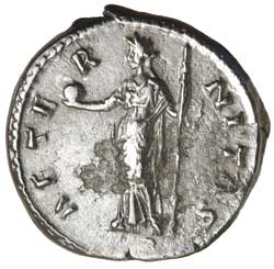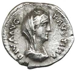 FAUSTINA SENIOR, wife of Antoninus Pius, (died A.D. 141) silver denarius, issued in 150, (3.02 ...