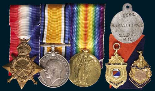 TRIO: 1914-15 Star; British War Medal 1914-18; Victory Medal 1914-19. 8566 Gnr. H P.Dallinger. 17F.A.Bde. ...