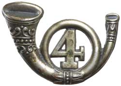 4TH REGIMENT NSW VOLUNTEER INFANTRY, c1890s, pill box cap badge in white metal (30mm) (Grebert p28 similar variety). Lugs damaged, otherwise very fine.