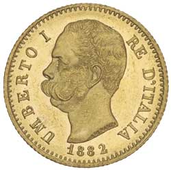 ITALY, Umberto I, twenty lire 1882 (KM.21). Nearly uncirculated.