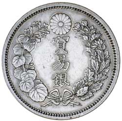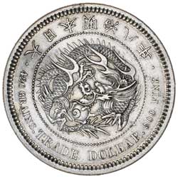 JAPAN, Meiji Era, silver trade dollar, Yr 8 (1875) (KM.28b.1). Toned, extremely fine.
