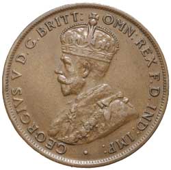 GEORGE V, 1925 London die. Plain die state, glossy brown patina, good very fine.