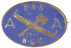SELECTION OF BADGES, mostly enamel, Northern Suburbs Scottish Association, Assistant Secretary 1928 with attached cloth rosette by Miller & Sons; RAOB 50th Anniversary 1927-1977, Pride of Bankstown Lodge No. 23, depicts map of Australia and UK joined by chain; Australian Roller Skating Rink Operators Assn. by Meyers & Co. Brisbane; Royal Agricultural Society of NSW, 1951 'AA' badge with crossed axe and saw by Millers Sydney; South Australian Centenary 1836-1936 large tinnie (56mm) depicting kangaroos; Ansett Air Freight wing (70mm) in blue and white plastic. Mostly very fine - extremely fine, includes several rare items. (6)