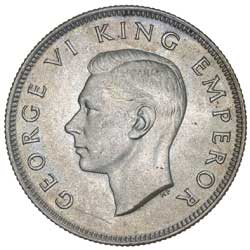 GEORGE VI, florin, 1944. Lightly toned, virtually uncirculated and a key date.