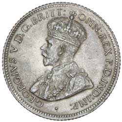 GEORGE V, 1924. Reverse die breaks around kangaroo and emu, choice uncirculated and rare.