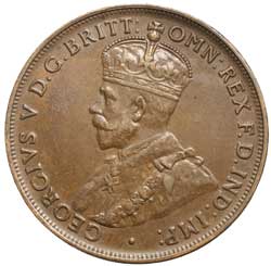 GEORGE V, 1920 plain, Indian die. Glossy brown, reverse rim nick, otherwise extremely fine and rare thus.