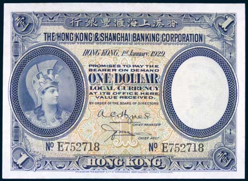HONG KONG, The Hong Kong & Shanghai Banking Corporation, one dollar, 1st January 1929, No. E752718 (P.172b; Ma.H4). Nearly uncirculated.