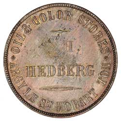 HEDBERG, O.H., Hobart Town Australia seated figure pattern penny, undated (A.200) by W.J.Taylor. Most attractive ...