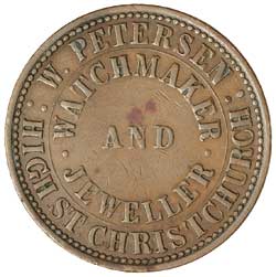 PETERSEN, W., Christchurch penny, undated (A.437). Four dry spots on reverse, brown patina, good very fine and scarce thus.