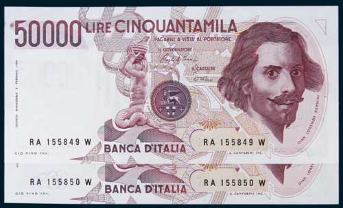 ITALY, Banca d'Italia, fifty thousand lire, 6 Febbraio 1984, RA 155849/50 W (P.113a) consecutive pair. ...