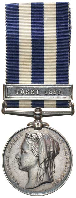 EGYPT MEDAL 1882-89, undated reverse, - clasp - Toski 1889. Engraved with Egyptian Army details in Arabic. Some contact marks, otherwise good fine.