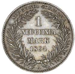 GERMAN NEW GUINEA, one mark, 1894A. Good extremely fine and rare in this condition.