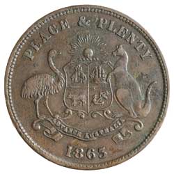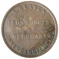 BEAVEN, S., Invercargill penny, 1863 (A.42). Old scratches on the obverse, usual dark brown patina, good very fine.