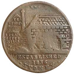 PEEK & CAMPBELL, Sydney Tea Stores, Sydney penny, 1852, four lines inscription (A.427) by J.C.Thornthwaite. ...
