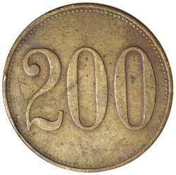 WORLD WAR I, SMS Emden canteen tokens in brass for ten and two hundred pfenning. The first holed, otherwise very fine, the second rare. (2)